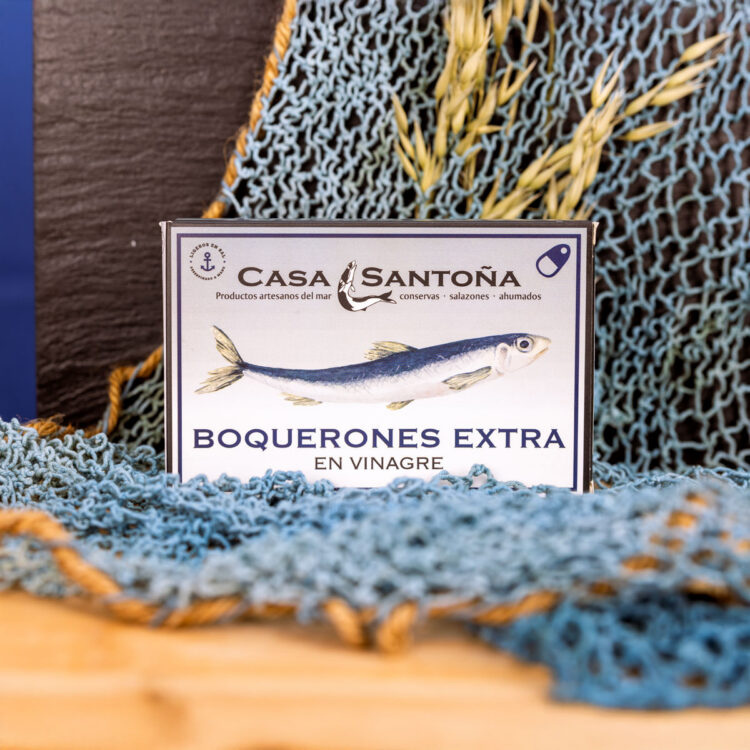 El Boquerón Extra del Cantábrico de Casa Santoña se elabora con ejemplares seleccionados en su mejor momento de frescura. Limpios a mano y marinados en vinagre y aceite de calidad, conservan una textura firme y un sabor delicado que realza su origen cantábrico. Ideales para degustar solos, en tostas o acompañados de anchoas, representan la esencia del mar y la tradición artesanal de Casa Santoña.