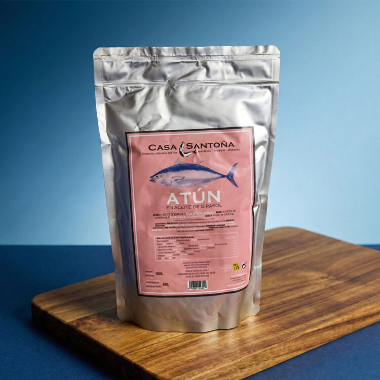 Disfruta de la calidad de Casa Santoña con nuestro Atún en Aceite de Girasol en formato bolsa de 1kg. Lomos jugosos y tiernos. El formato perfecto para hostelería y grandes consumidores que buscan sabor auténtico y practicidad.