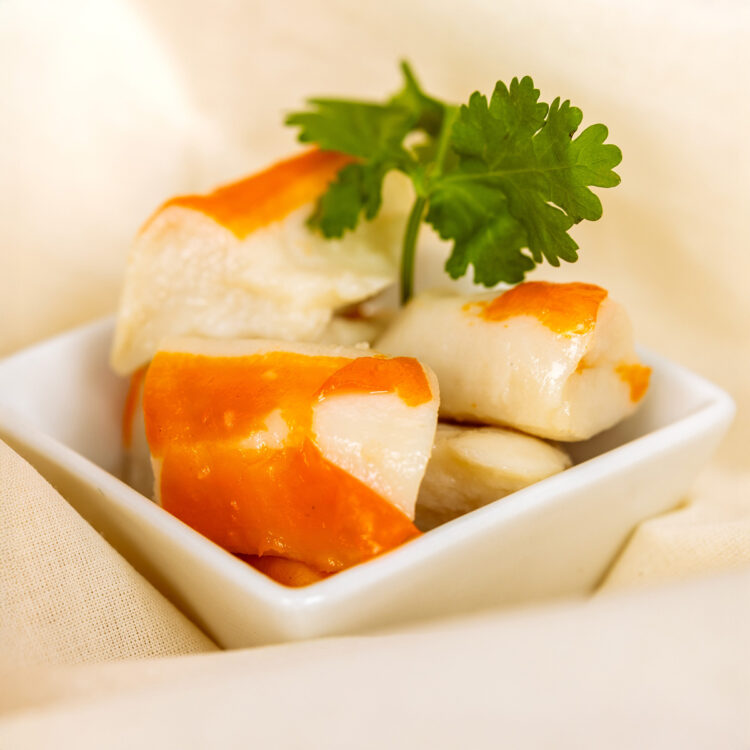 Surimi (Pescado), Trigo (gluten). Molusco, Soja, Huevo y Sulfitos