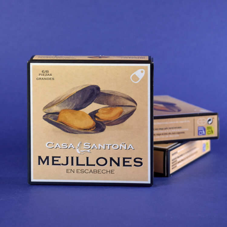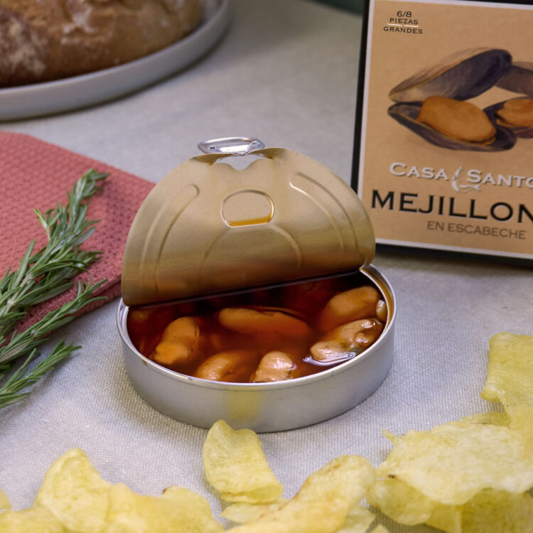 Los mejillones en escabeche 6/8 piezas de Casa Santoña destacan por su tamaño extra y su carne tierna y jugosa. Seleccionados cuidadosamente y elaborados con un escabeche tradicional de vinagre, aceite y especias, ofrecen un sabor intenso y equilibrado. Perfectos para degustar como aperitivo, en tostas o para acompañar ensaladas y platos fríos. Una conserva gourmet que refleja la calidad y el cuidado característico de Casa Santoña.