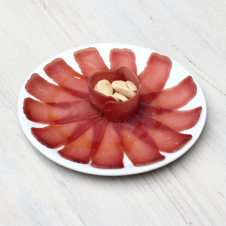 A diferencia del atún fresco, la mojama de atún presenta un carácter más intenso en color, aroma y sabor. Así, cortada en lonchas y acompañada de aceite de oliva es un aperitivo exquisito que destaca por su alto contenido en proteínas y nutrientes. Por ello, es un alimento idóneo en las comidas de Navidad pues, además de ser un producto de calidad, también es saludable.