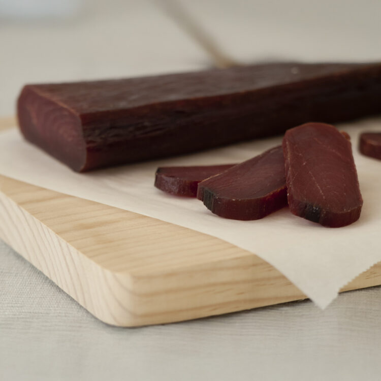La mojama es uno de los pescados más cotizados y una joya en la gastronomía de Andalucía y el Levante. Aunque se puede usar carne de bonito, la principal materia prima se halla en los lomos del atún rojo que, una vez que han sido curados, adquieren un tono pardo y se textura alcanza mayor firmeza.